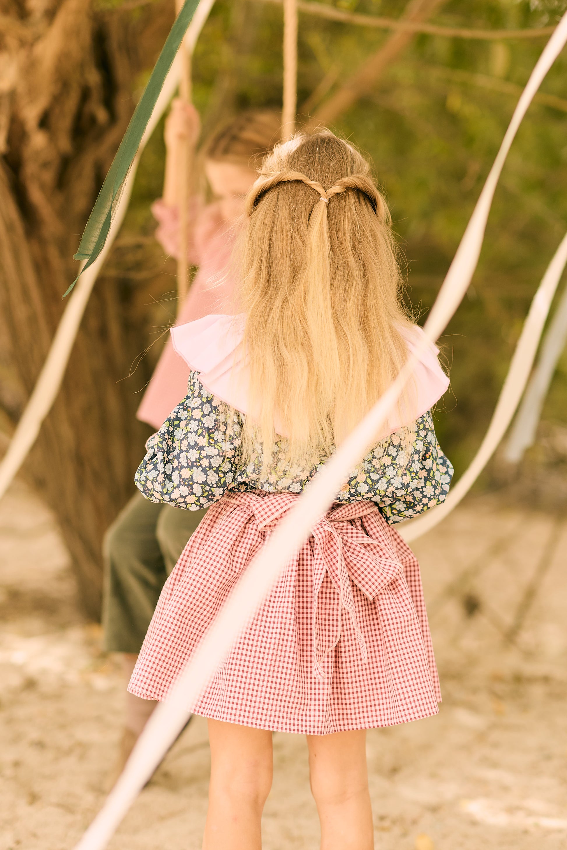 ¿Quieres ir un clásico renovado? Tienes esta falta para tu peque, con goma en la cintura y un lazo regulable en la espalda.