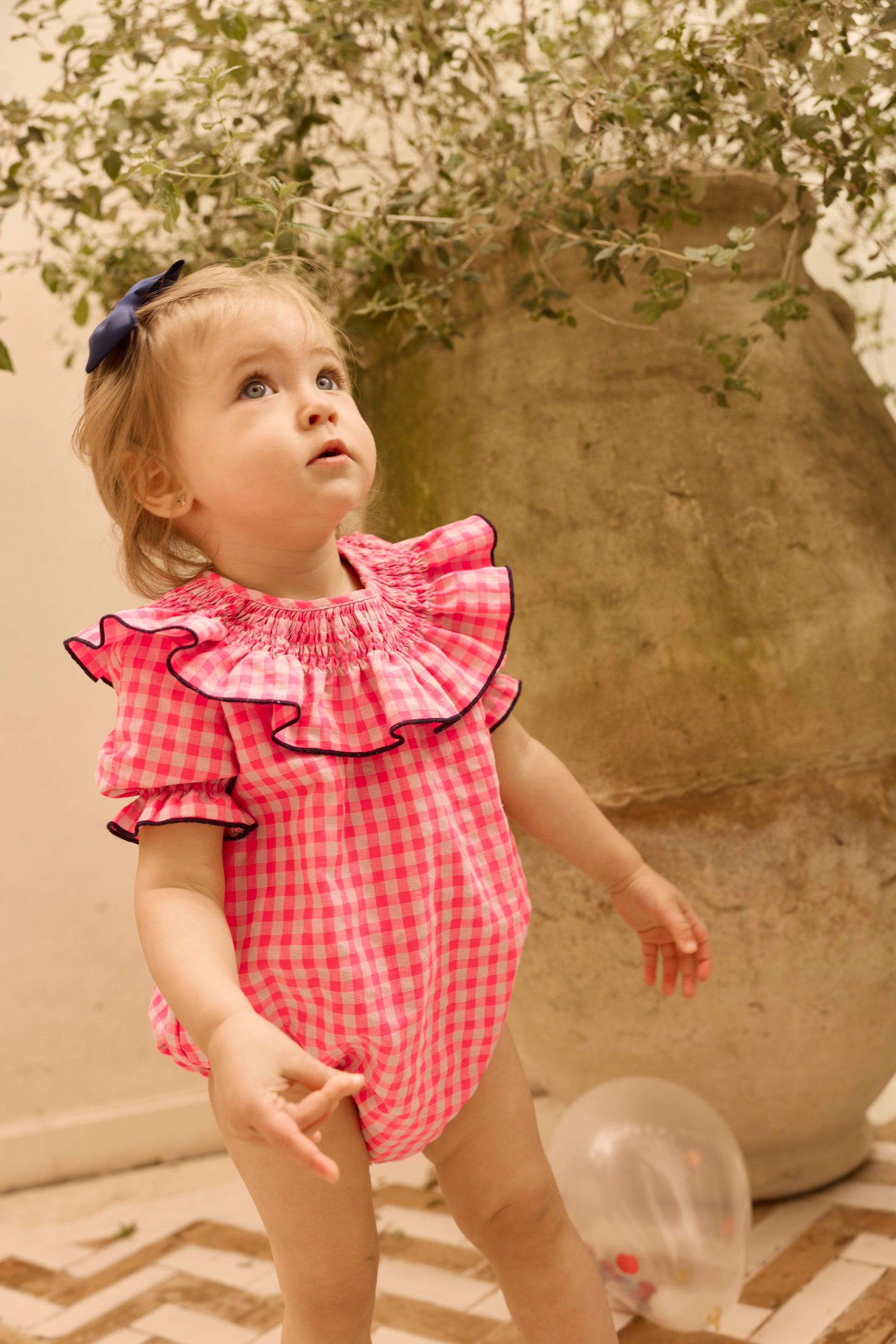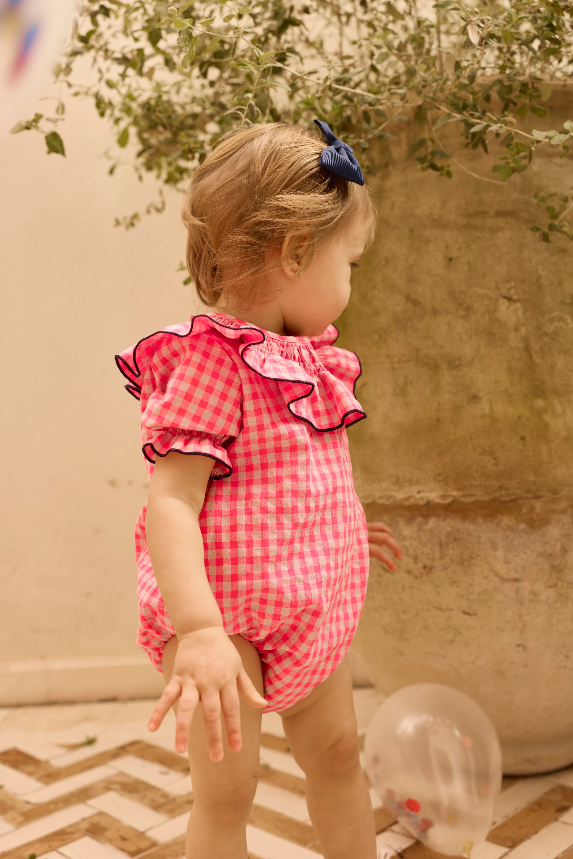 Rana infantil cómoda y funcional, confeccionada en tejido suave que respeta la piel. Diseñada para facilitar el movimiento y el uso diario. Tiene unos lazos decorativos a contraste.