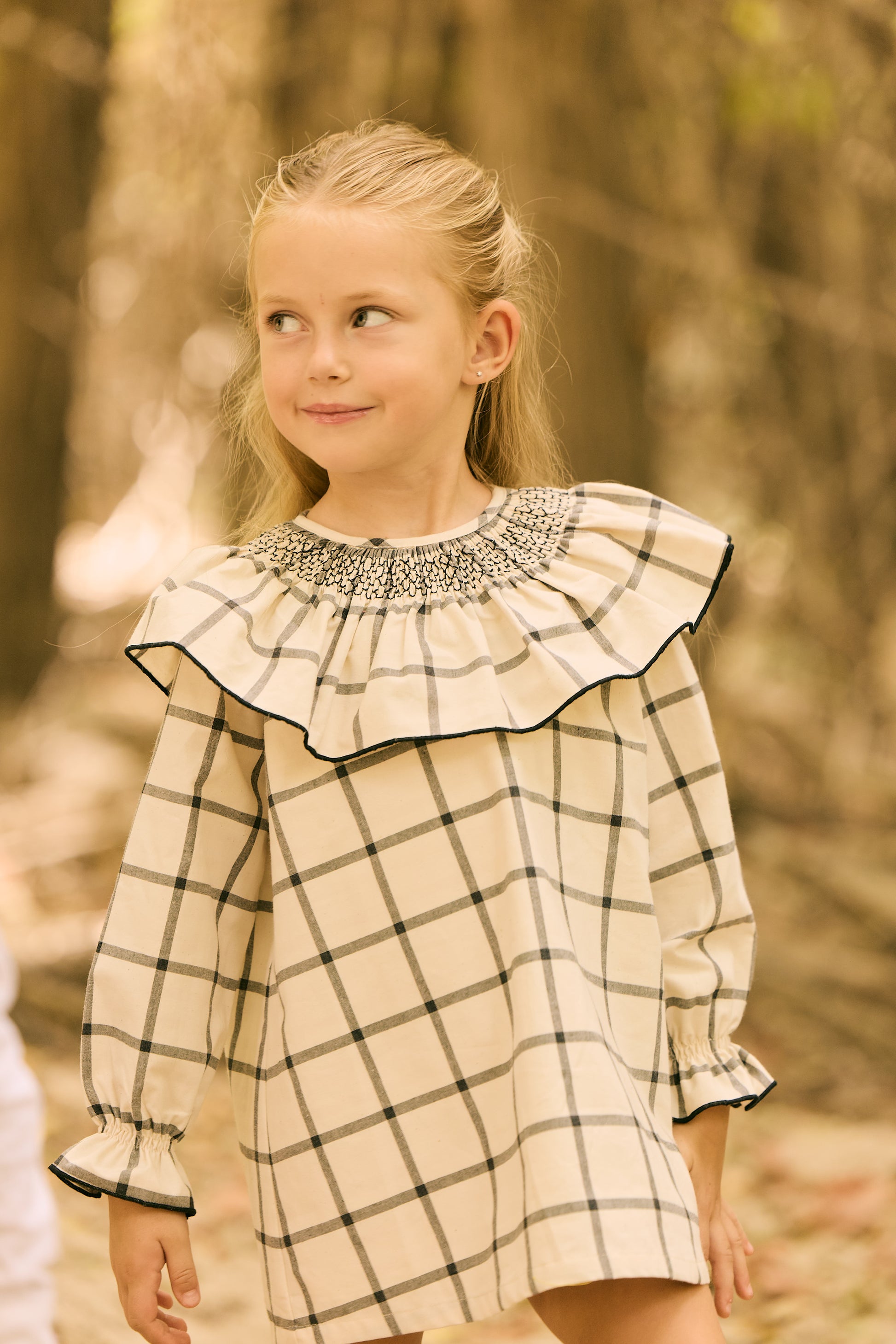 Precioso vestido con un diseño moderno y elegante, cuidando los detalles en el precioso cuello engomado.