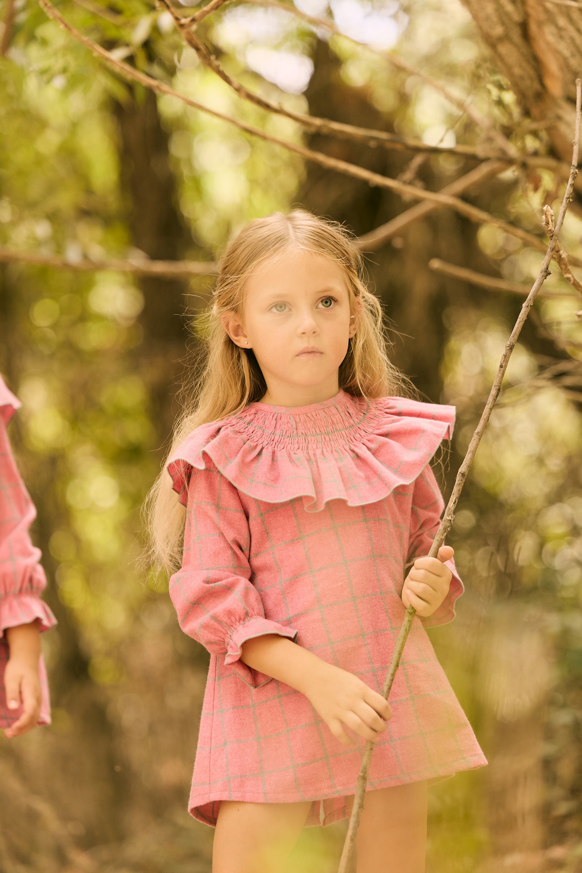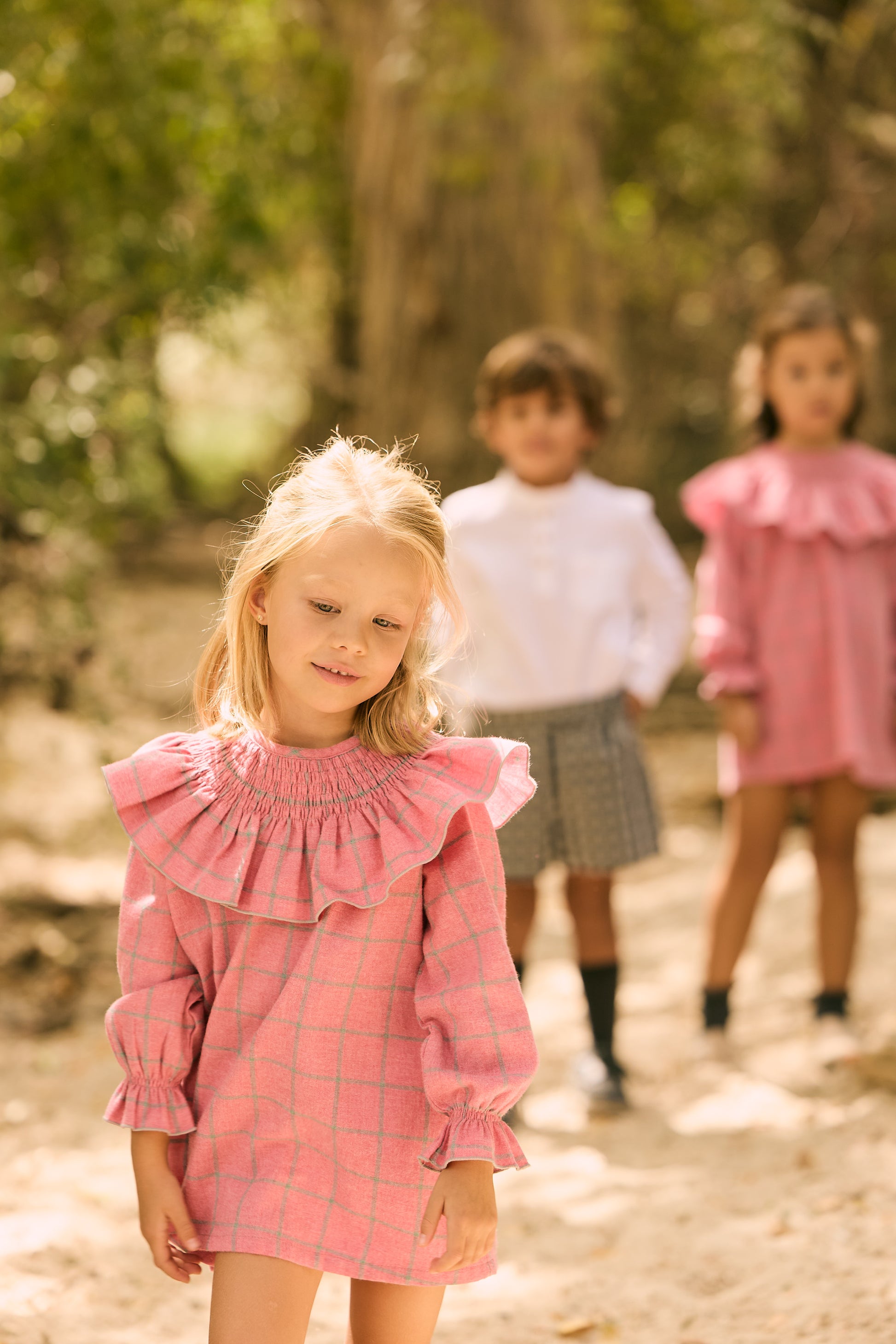 Precioso vestido con un diseño moderno y elegante, cuidando los detalles en el precioso cuello engomado, el tejido es una franela.